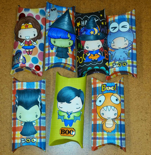 It's a lil late...but I want to share the halloween goodies I was able to make for my collegues. The beanie halloween set from TGF was too cute to not use! I had so much fun making them. Below are some candy treats and pillow boxes I made using them and a few other TGF halloween images. I just embellished them at the end with stickers. Hope you enjoyed viewing them and have a nice weekend!